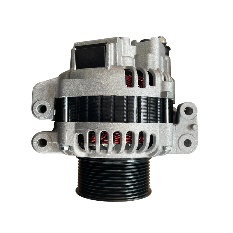 The internal rectifier, regulator, and stator assembly is manufactured to provide consistent current output and maintain voltage stability under varying engine speeds. The high-capacity rotor and bearing arrangement is designed for steady operation on large commercial vehicles that experience long running hours, highway driving cycles, and temperature fluctuations.